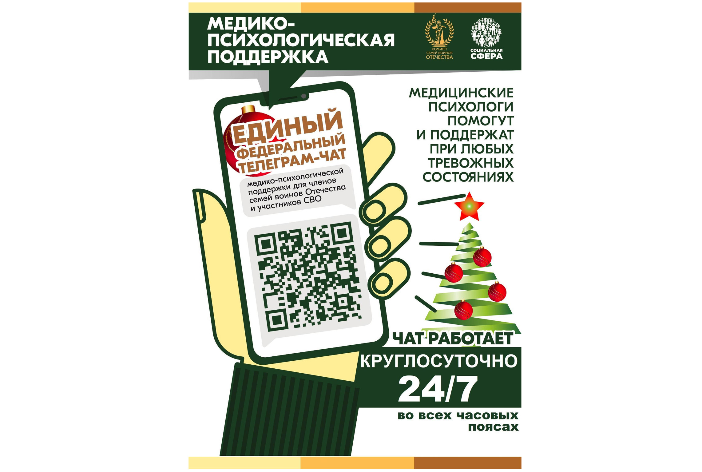 Продолжает свою работу единый федеральный чат Комитета семей воинов Отечества по оказанию медико-психологической поддержки семьям и участникам специальной военной операции (СВО) в круглосуточном режиме.