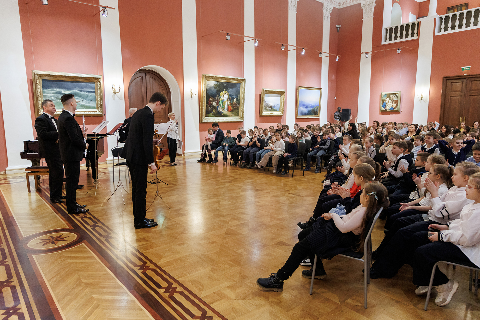 • музыкальное занятие с камерным ансамблем «Барокко» в Парадном зале Губернаторского дома: музыка И.-С. Баха, Ф. Крейслера, К. Сен-Санса, Ф. Шуберта, Р. Шумана, П. Чайковского, С. Прокофьева, Г. Свиридова, В. Агафонникова, Ф. Строганова (40 мин)