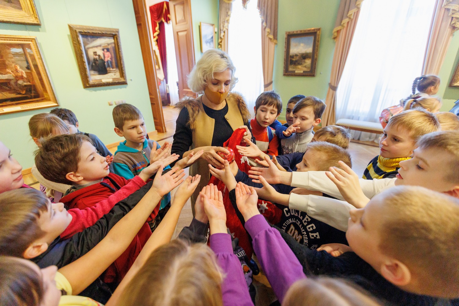 Мальчишкам и девчонкам предстоит нарядить елки, изучить традиции празднования главного зимнего праздника в разных странах, подготовить подарки для родственников музейного кота (а их у него немало!) и создать для себя новогодний презент. В благодарность за помощь Артишок устроит для ребят праздник в Губернаторском парке с танцами, играми, конкурсами, хороводом у елки и, конечно же, главными героями Нового года – Дедом Морозом и Снегурочкой.